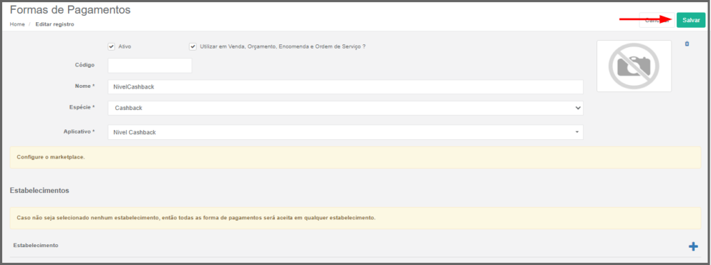 Vou lhe auxiliar na configuração da forma de pagamento nível Cashback. Siga os seguinte passo a passo.