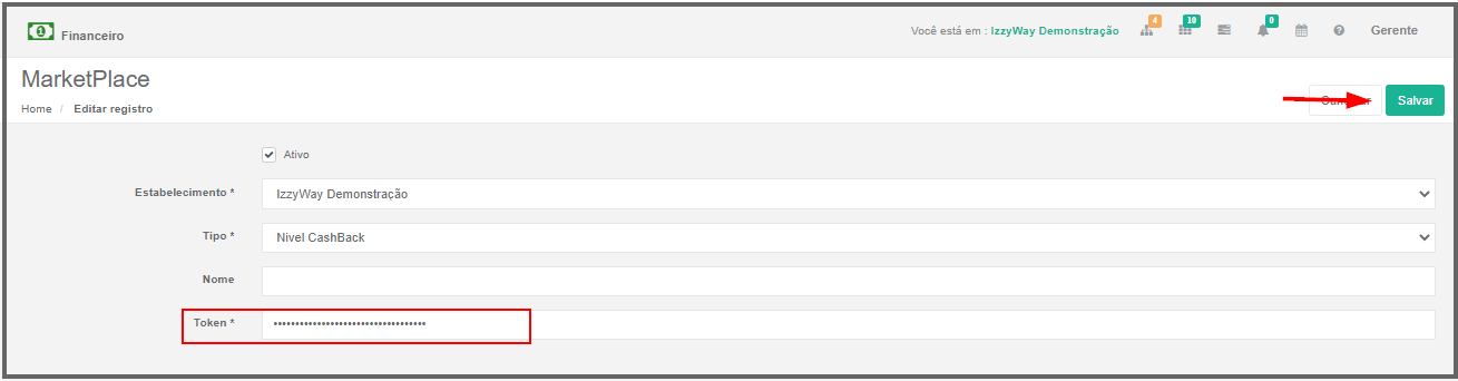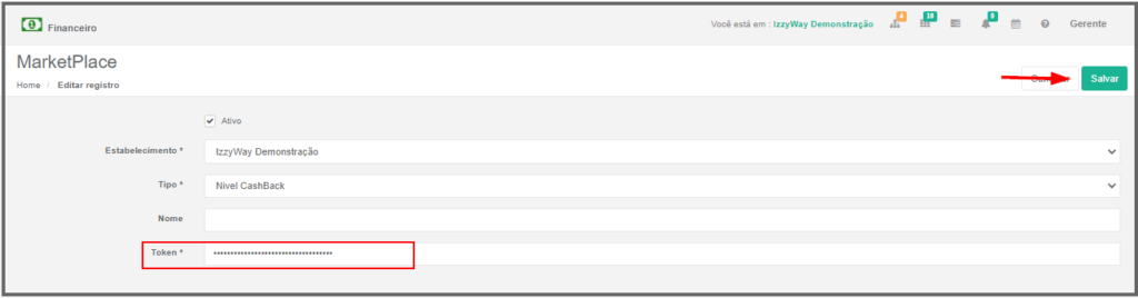 Para preencher o Token é necessário que o estabelecimento forneça para o IzzyWay no momento do cadastro.