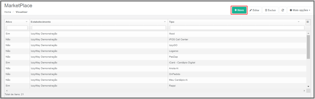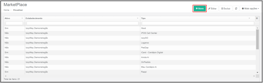 Passo 6. Preencha os campos que se pede, Estabelecimento, Tipo, Nome e Token.