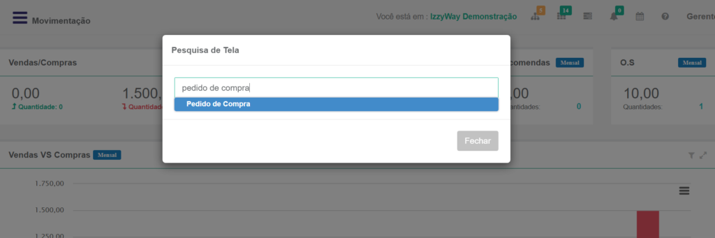 Passo 1. Clique F2 e digite Pedido de Compras.