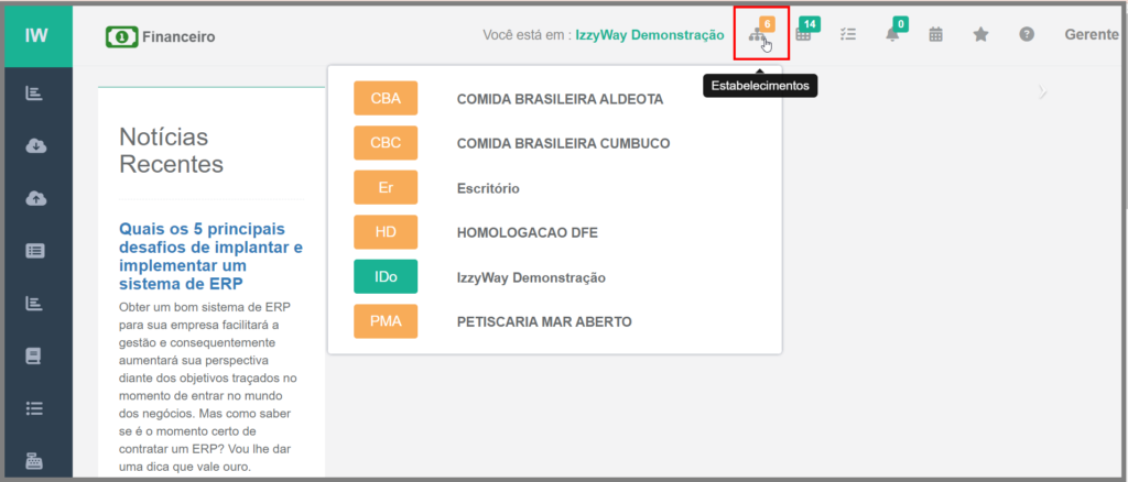 Agora que você já entendeu como visualizar os estabelecimentos, vamos dar continuidade ao nosso tour pelo ERP IzzyWay.